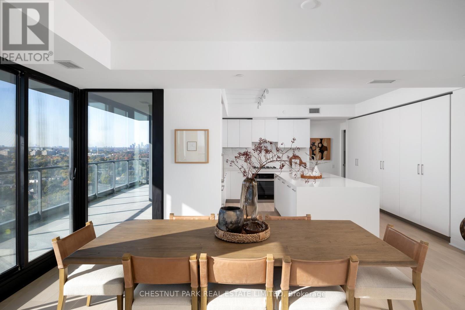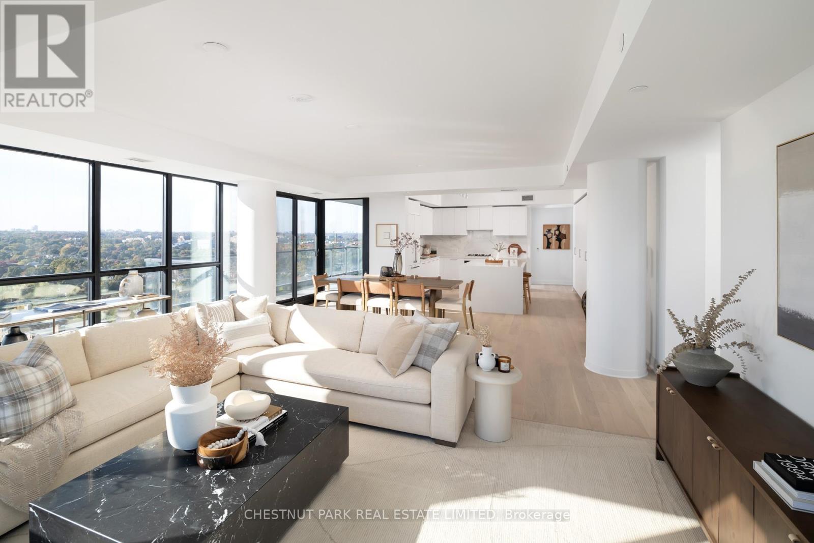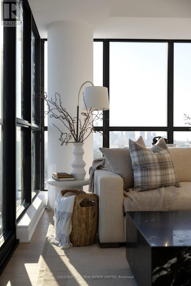 Welcome to this exquisite 2-bedroom, 3-bathroom southwest corner suite in Leaside's Upper East Village. The inviting foyer features a powder room and two coat closets, leading to an expansive open-concept living and dining area with floor-to-ceiling windows, two walkouts to generous balconies, and unobstructed southwest city views. The gourmet kitchen boasts abundant counterspace, a full wall of pantry storage, and a large island with a breakfast bar. A split-bedroom layout ensures privacy: the serene primary suite offers a walk-in closet, 5-piece ensuite, and balcony access, while the guest bedroom includes a 3-piece ensuite, double closet, and balcony walkout. Neutral tones, natural light, and thoughtful design create a warm, elevated living experience ideal for any lifestyle. (42237224)