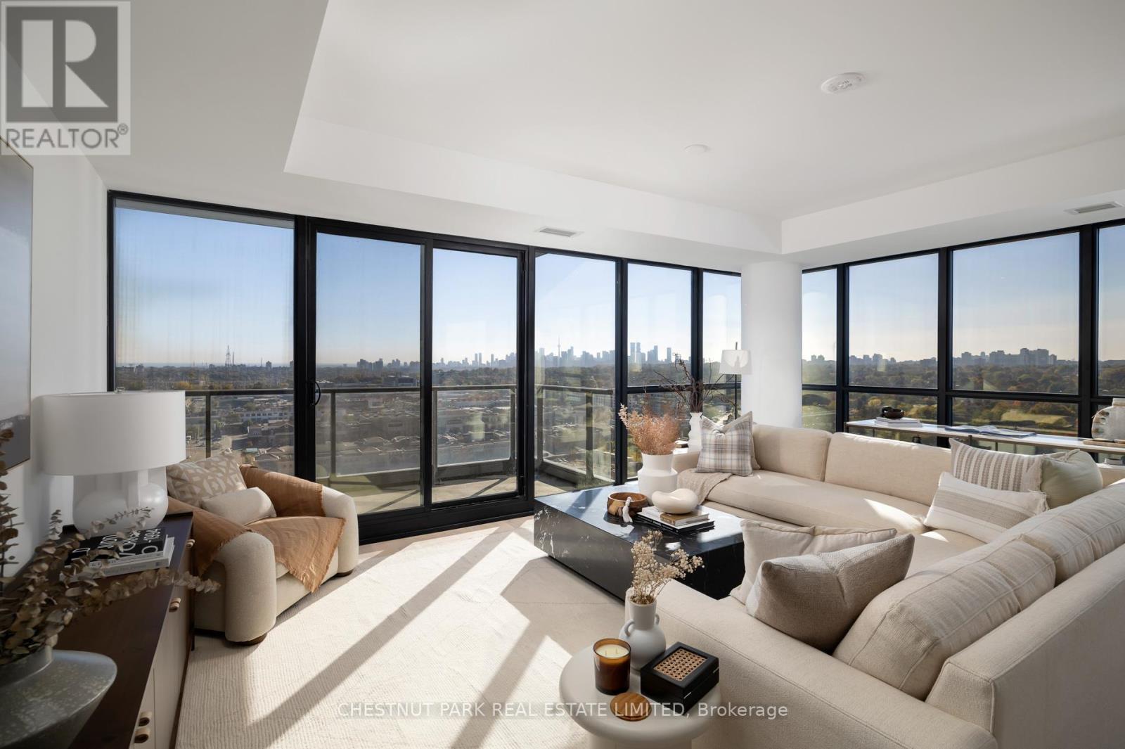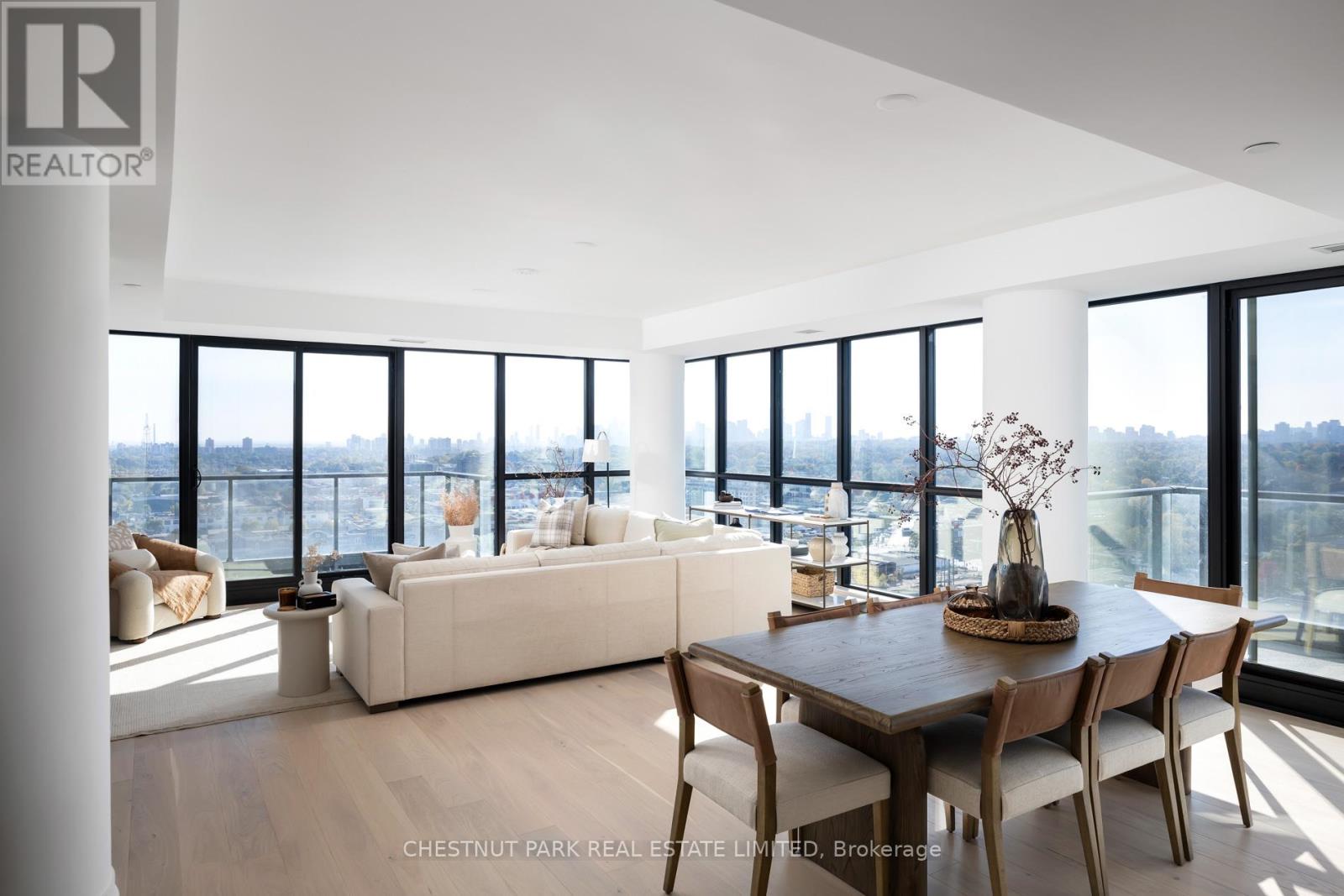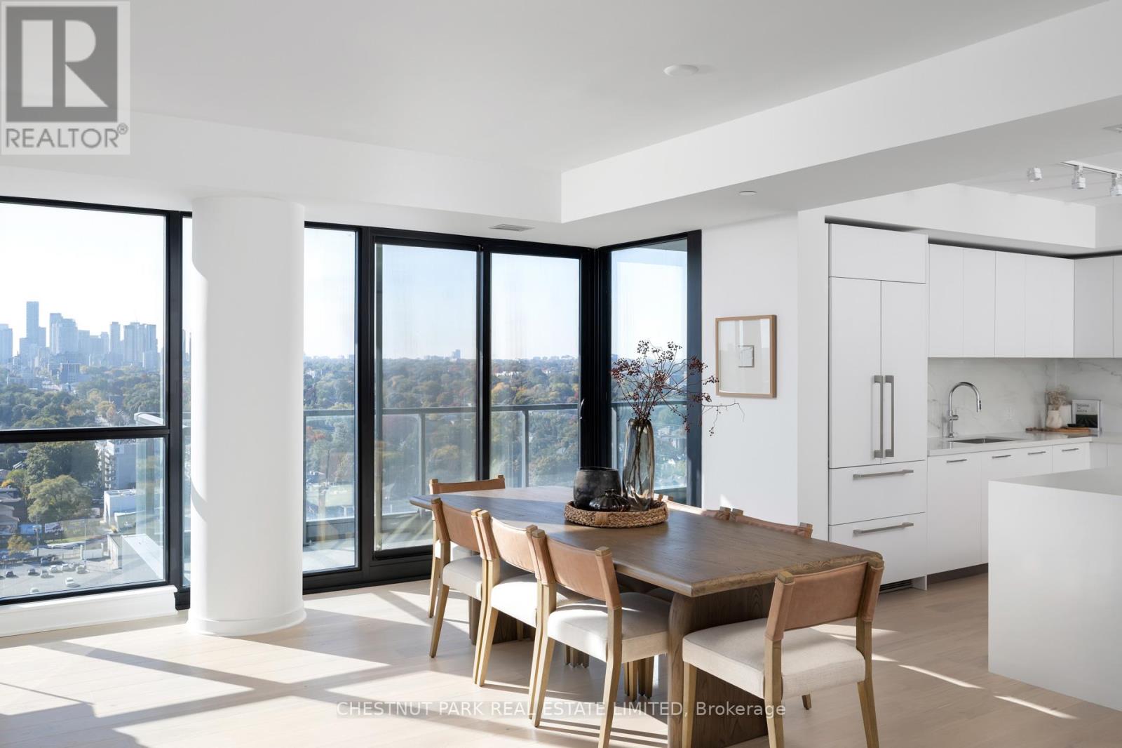 Welcome to this exquisite 2-bedroom, 3-bathroom southwest corner suite in Leaside's Upper East Village. The inviting foyer features a powder room and two coat closets, leading to an expansive open-concept living and dining area with floor-to-ceiling windows, two walkouts to generous balconies, and unobstructed southwest city views. The gourmet kitchen boasts abundant counterspace, a full wall of pantry storage, and a large island with a breakfast bar. A split-bedroom layout ensures privacy: the serene primary suite offers a walk-in closet, 5-piece ensuite, and balcony access, while the guest bedroom includes a 3-piece ensuite, double closet, and balcony walkout. Neutral tones, natural light, and thoughtful design create a warm, elevated living experience ideal for any lifestyle. (42237224)