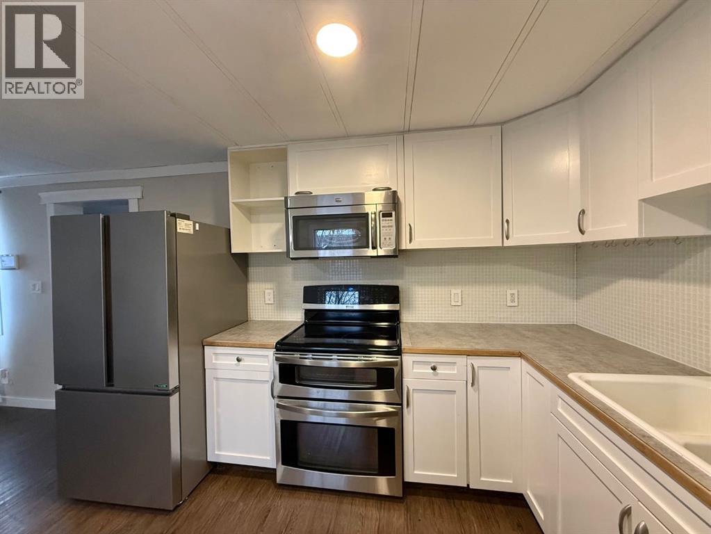 Charming, cute mobile home on an end corner lot, offering a huge private fenced yard and tonnes of parking! Located close to the McLeod River, this home has plenty of upgrades! The addition holds the spacious primary bedroom with a big walk in closet nicely set off the main area of the home. In the addition you will also love the large flex area- a great catch all zone with plenty of tall cabinets ideal for pantry and outerwear things and a shoe rack inside one! This is great for the organizer in you! On top of new flooring, paint, and cabinets, the home has had a complete electrical upgrade from the panel in 2019 to all of the plugs and switches. Newer stainless steel appliances give the white kitchen sharp appeal. The hot water tank was replaced in 2016 and the furnace has been cleaned and serviced every year. Enjoy the beautiful light that floods this house in the day and the sunset on the front porch or the back deck. Put your lawn chairs on the deck and enjoy the sunsets! (31698467)