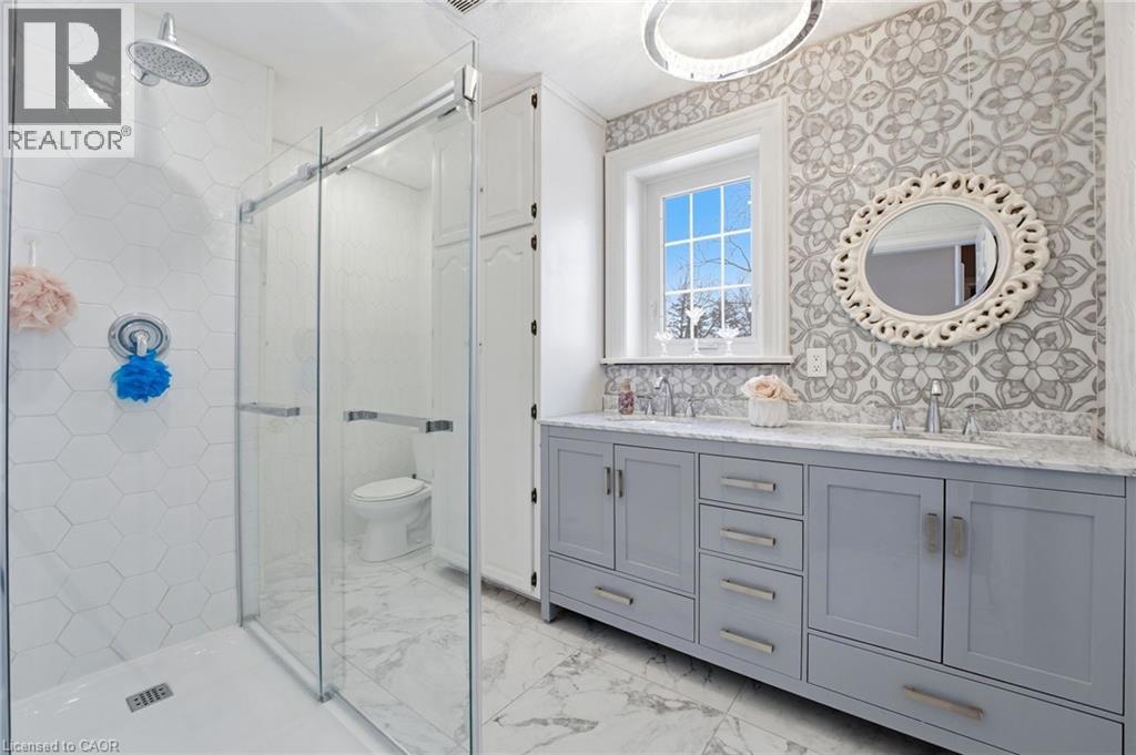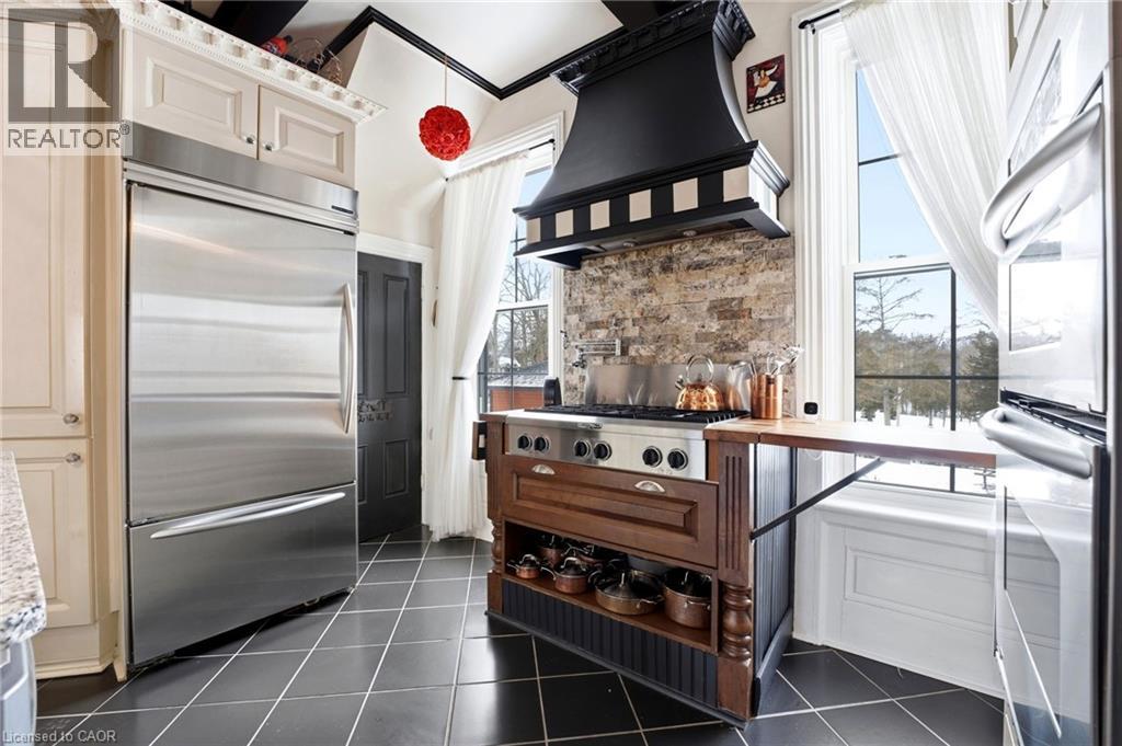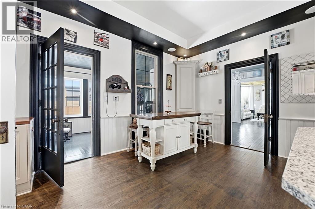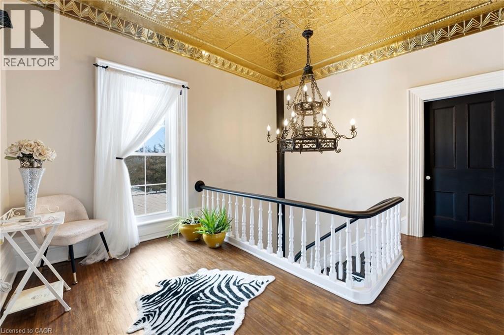 Welcome to the iconic Quance House — a celebrated landmark in Delhi, originally built in 1896 and steeped in local heritage. Once the residence of the prominent Quance family, owners of one of the last operating mills along Big Creek in Norfolk County, this grand 2.5-storey brick home is a timeless showcase of historic craftsmanship and enduring character. Set proudly on a rare half-acre corner lot spanning two streets, this stately property offers 4 spacious bedrooms plus a main floor office, 2 beautifully updated bathrooms, convenient main floor laundry, and a refreshed kitchen that blends modern function with classic style. Inside, the home’s rich history is on full display. Soaring tin ceilings, refinished hardwood floors, original trim, and intricate architectural details create a warm and elegant atmosphere reminiscent of a bygone era. The formal dining room and expansive living room provide refined spaces for hosting gatherings or enjoying peaceful evenings at home. Thoughtfully maintained and updated, the home features newer windows, a durable steel roof, a double furnace system for efficient comfort, an owned hot water tank, and a Culligan water softener system. The full walk-through basement offers excellent storage and usability, complete with new awning-style windows that bring in natural light. Outdoors, the detached double-car garage includes an attached heated man cave — perfect for hobbies, a workshop, or entertaining on game day. The expansive backyard offers ample space to relax, garden, or explore the exciting potential for future lot severance. Located just steps from Quance Park, scenic walking trails, and the natural beauty of Big Creek, this is a rare opportunity to own one of Delhi’s most treasured historic homes. Historic charm. Modern comfort. Endless potential. (70210651)