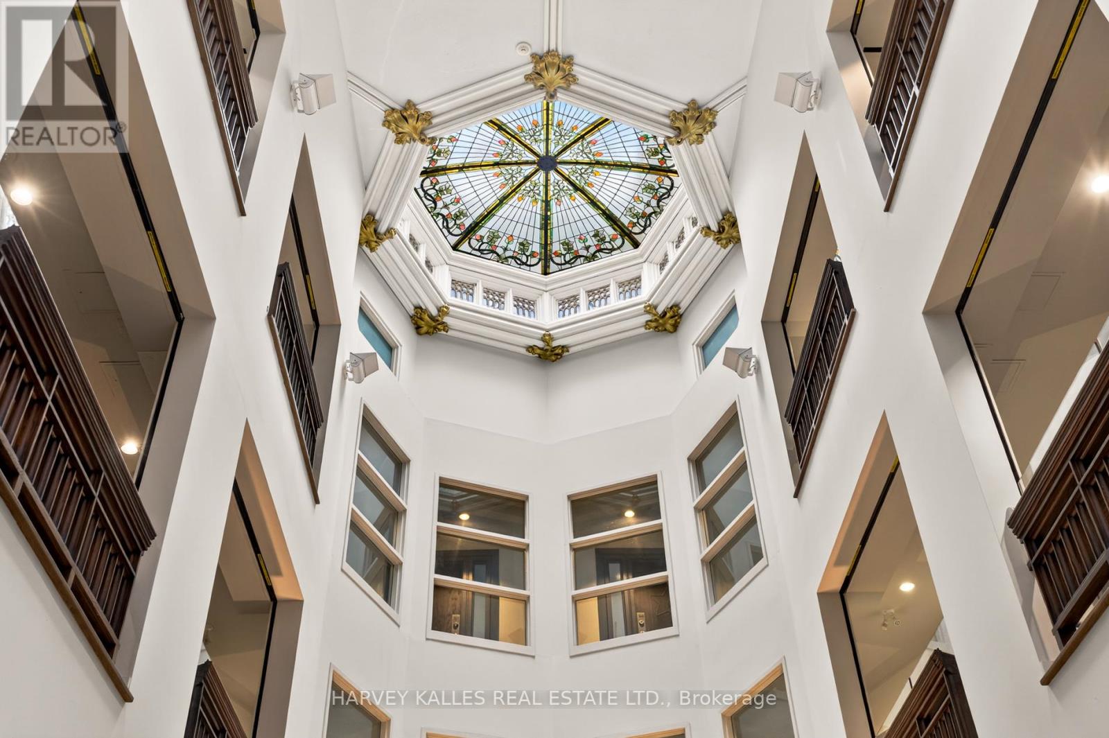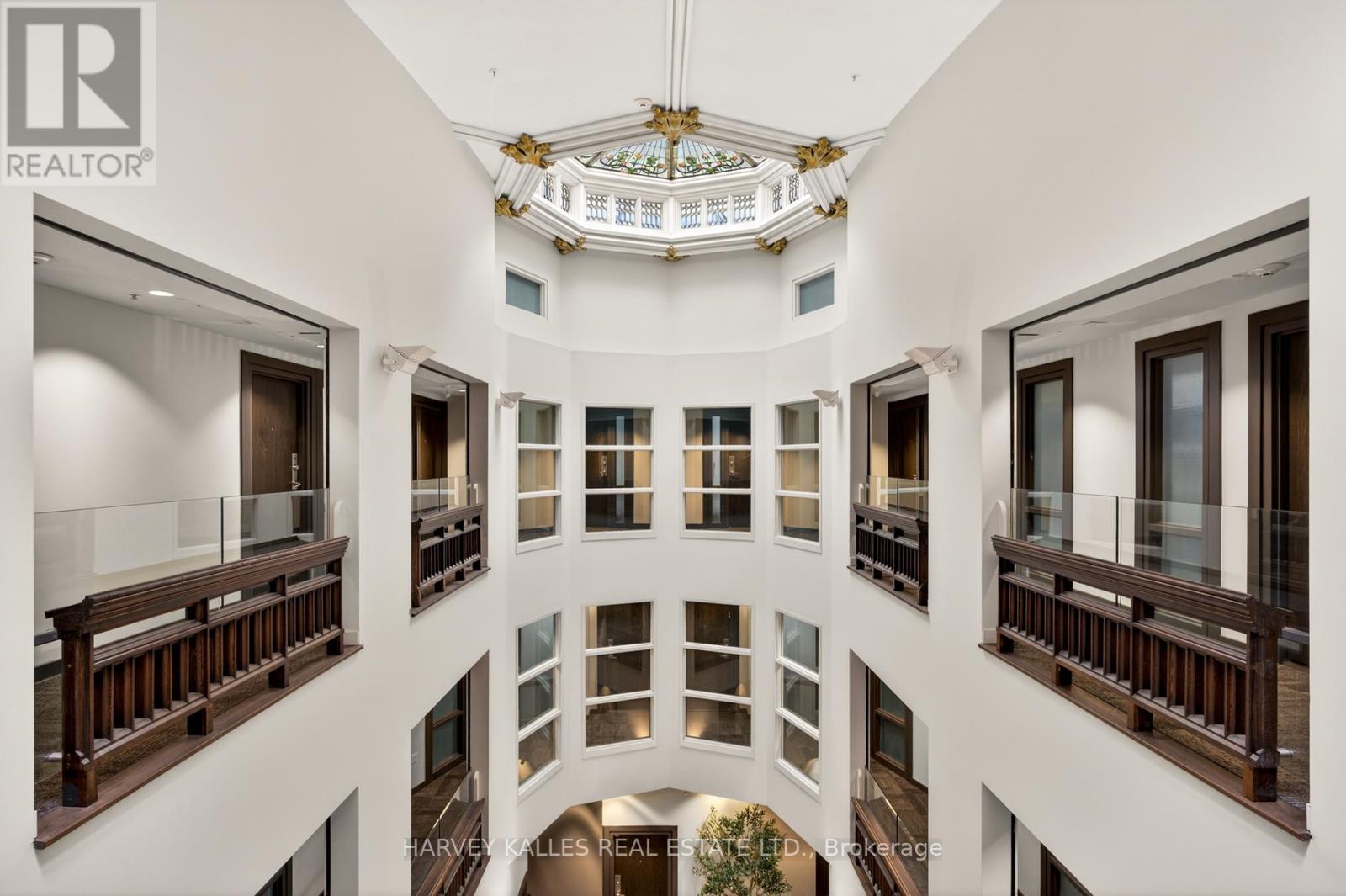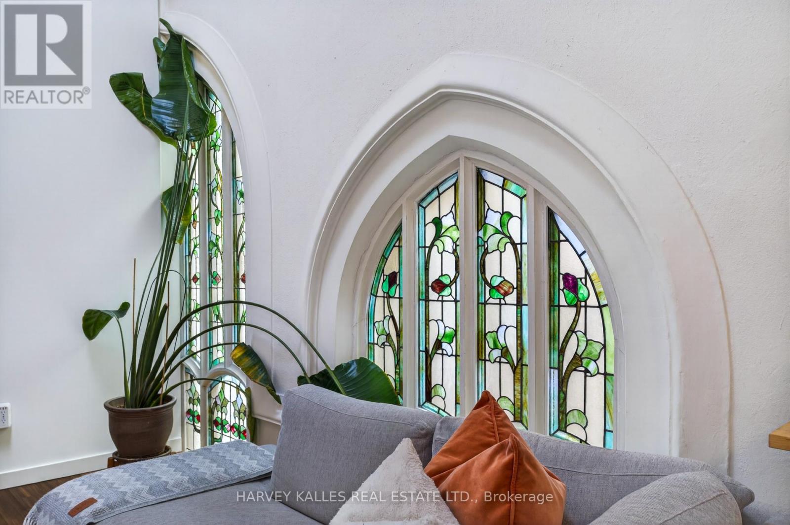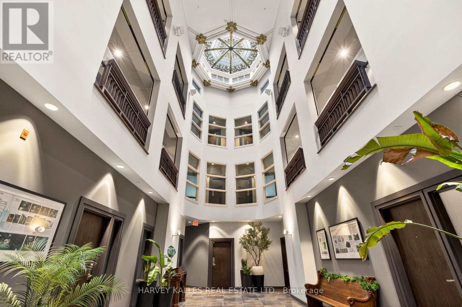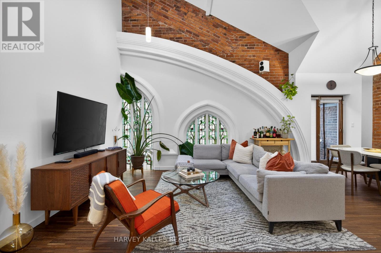 Welcome to Suite 306 at The Church Lofts, a boutique hard loft conversion completed in 2010 within a restored 1901 neo-Gothic church. A rare opportunity to own one of just 28 residences, this distinctive building blends preserved architectural character with modern design in one of Toronto's most dynamic west-end neighbourhoods.The building's impressive entrance opens into a striking central atrium crowned by a skylight, creating a dramatic sense of volume and light. The experience of arriving home is both architectural and atmospheric, a memorable feature that sets the tone from the moment you enter. Offering approximately 1,160 interior square feet and 156 square feet of exterior living space across multiple levels, this two-bedroom, two-bathroom residence is defined by exceptional proportions and authentic hard loft detailing. Soaring 19-foot ceilings, exposed brick walls, and six skylights create an airy, light-filled interior. The suite's one-of-a-kind stained glass windows serve as a remarkable focal point, preserving the building's historic character while adding warmth and artistry to the living space. Recent updates include fresh paint throughout, a new dishwasher, and newly installed solar blinds. Wood flooring runs throughout, complementing the loft's architectural elements with a cohesive finish. Two private outdoor patios extend the living space and offer inviting outdoor retreats. The functional multi-level layout provides well-scaled bedrooms and two full bathrooms, well-suited to both everyday living and entertaining. One parking space and a private locker are included. Ideally located steps to Dufferin Grove and Christie Pitts parks. Enjoy restaurants, bars and amenities along Bloor and College Street. Quick access to TTC and public transit. (42237831)