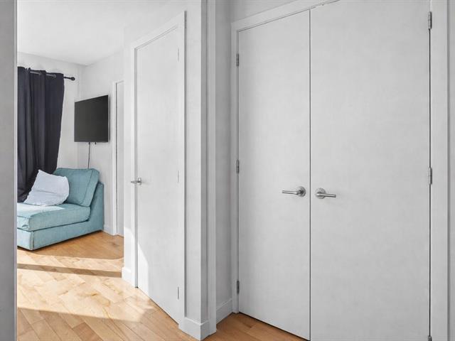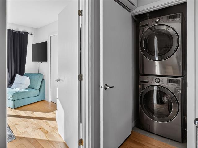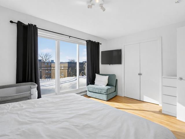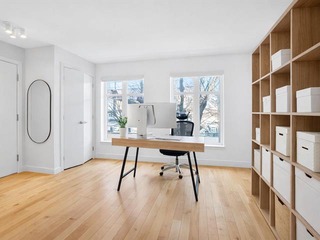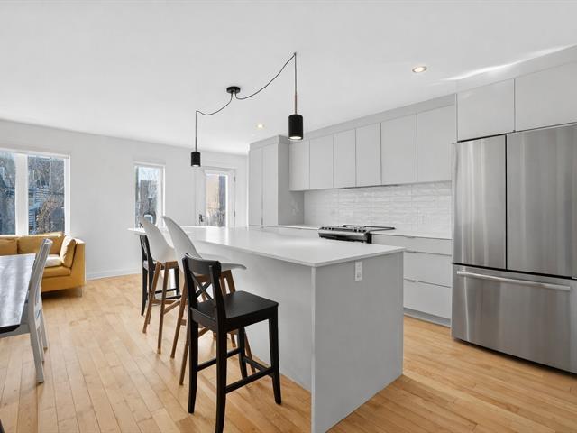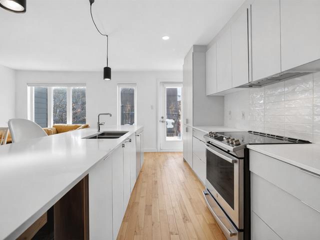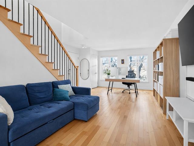 You will be charmed by this condo on two levels located in a small co-ownership of 4 units. On the first level: open concept between the living room/dining room and the kitchen. Perfect for entertaining with family and friends! A large central island can serve as an eating corner. On this floor, there is also a very practical powder room. On the second level: two very good size bedrooms, each with their own wardrobe. The washer/dryer are isolated in a closet. The bathroom has a separate bath and shower. Through the master bedroom, you have access to a spacious terrace that faces the beautiful green garden! (49849974)