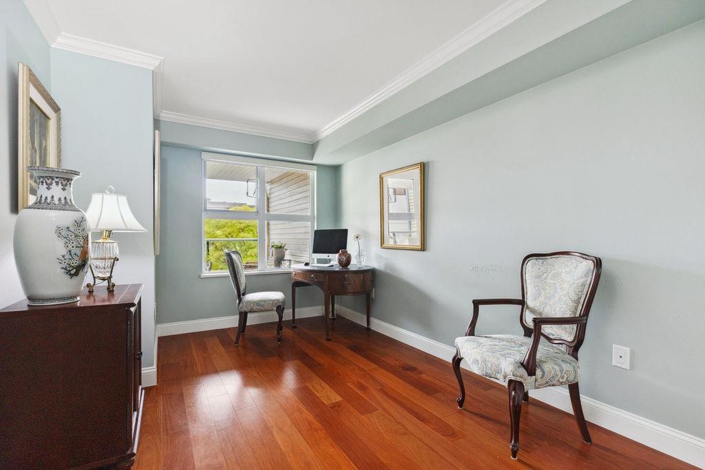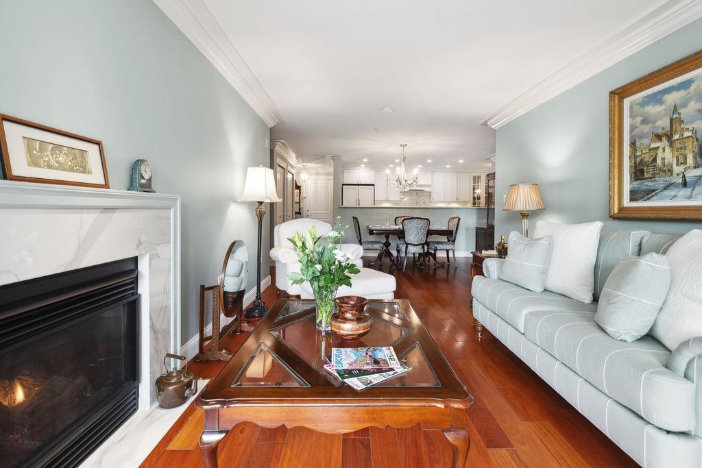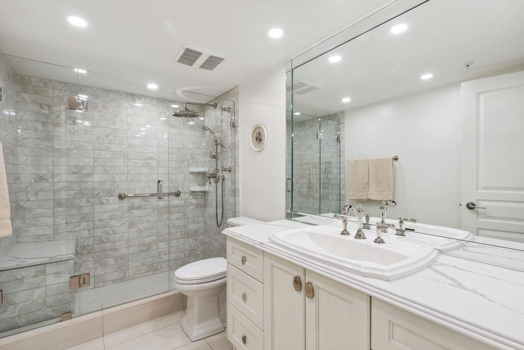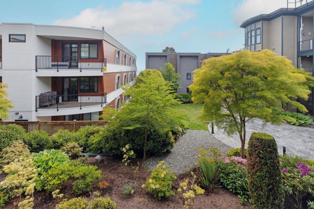 QUALITY 2bd + 2bth 1315 sq. ft condo in Five Corners. From superior designer kitchen & bathrooms (Carrara marble counters) to Lauzon Designer Collection engineered hardwood, radiant in-floor heating, crown moulding, & custom electric Sonoma blinds, every element reflects a commitment to elegance & functionality. The home is further elevated by exquisite Swarovski/Schonbek crystal chandeliers & light fixtures. The chefs kitchen is equipped w. premium appliances, incl. a 36-inch French door refrigerator, built-in electric oven/cooktop & LG digital washer/dryer tower (Apr 2025). Spacious balcony w. south exposure & courtyard/ocean views. Storage locker. Thoughtfully designed from top to bottom by an interior designer w. no expense spared! Beach, shops & restaurants. (32503631)