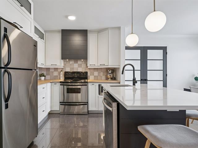 Superbe condo spacieux de 1199 pc niché au coeur du secteur prisé de Blainville, offrant une luminosité exceptionnelle grâce à sa généreuse fenestration, un entretien irréprochable et de magnifiques planchers de bois. Il propose 3 chambres, dont une suite principale avec walk-in et une chambre munie d'un lit escamotable. Vaste salle de bain complète au goût du jour avec douche vitrée, bain séparé et vanité offrant beaucoup de rangement. Cuisine avec îlot rénové en 2021, salon chaleureux avec foyer au gaz, grand balcon avec toiles pour intimité accrue, rangement intérieur et extérieur, ainsi que 2 stationnements. À visiter sans tarder! (41240658)
