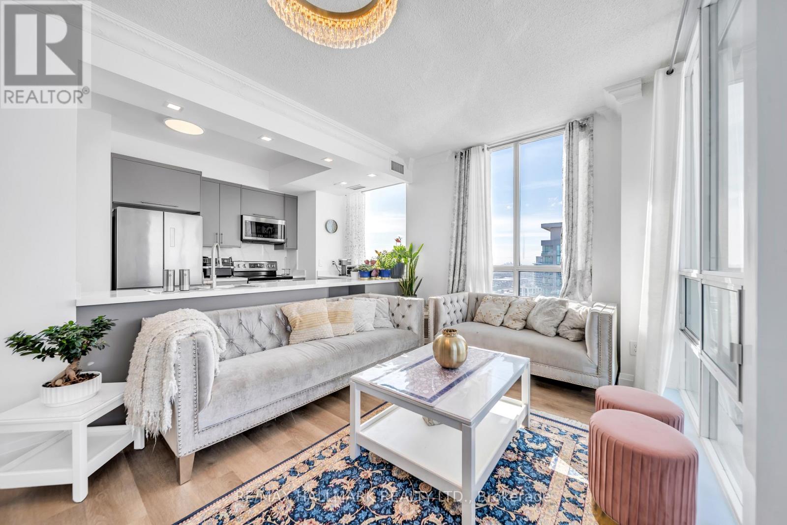 Fully Renovated Corner Penthouse Completely Reimagined In 2025 With Modern, High-Quality Finishes Throughout. This Bright High-Floor Corner Unit Offers 2 Spacious Bedrooms Plus A Fully Enclosed Den With Door, Ideal As A Third Bedroom Or Private Home Office, Along With A Cozy Corner Balcony Perfect For Relaxing While Enjoying Elevated City Views With Distant CN Tower And Lake Ontario Sightlines. Expansive Windows Provide Abundant Natural Light And Are Complemented By Modern Window Coverings For Added Privacy And Comfort, Creating A Bright And Inviting Living Environment.The Contemporary Open-Concept Kitchen Has Been Thoughtfully Updated With Modern Cabinetry, New Countertops, And Stainless Steel Appliances Including A French Door Fridge, Electric Oven, Hood Microwave, And Dishwasher, Seamlessly Flowing Into The Living And Dining Areas For Comfortable Everyday Living And Entertaining. Bathrooms Are Tastefully Renovated With Modern Vanities And LED Mirrors, While Brand-New Flooring, Interior Doors, Wall Finishes, And Premium Fixtures Complete This Truly Move-In-Ready Residence. A Convenient In-Unit Stacked Washer And Dryer Adds Everyday Practicality. Two Separate Air Conditioning Systems Provide Enhanced Climate Control And Personalized Comfort Throughout Different Areas Of The Home.Includes 1 Parking Space And 1 Locker For Added Convenience And Storage. Located In The Prestigious Monarch Equinox Community With Direct Indoor Access To Scarborough Town Centre, TTC, And GO Transit, Offering Exceptional Year-Round Convenience. Minutes To Highway 401 And Close To University Of Toronto Scarborough And Centennial College, Making It Ideal For Both End Users And Investors.Residents Enjoy An Impressive Selection Of Resort-Style Amenities Including 24-Hour Concierge, Indoor Swimming Pool, Jacuzzi, Fully Equipped Fitness Centre, Home Theatre, Virtual Golf Simulator, Billiards Room, Table Tennis, Card Room, Library, Elegant Party Room, Two Guest Suites, And Car Wash Facility. (42238656)