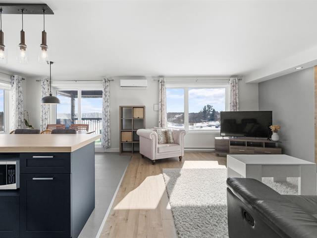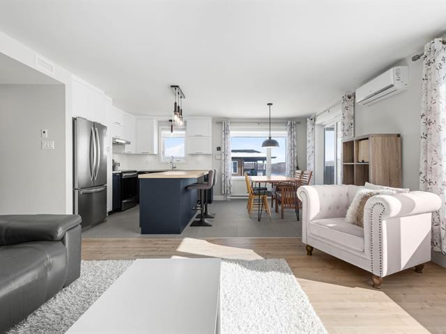 Superbe condo 2019 au goût du jour, situé dans un secteur recherché, à proximité de tous les services. La propriété vous offre 2 chambres avec walk-in, une grande cuisine fonctionnelle avec îlot centrale ainsi qu'une belle aire ouverte accueillante et confortable. Orientation stratégique pour un maximum de luminosité naturelle. Sans voisins arrière, profitez d'un beau patio extérieur intime, de deux espaces de stationnements et d'une remise extérieure. Disponible rapidement. Une visite s'impose. (44373735)