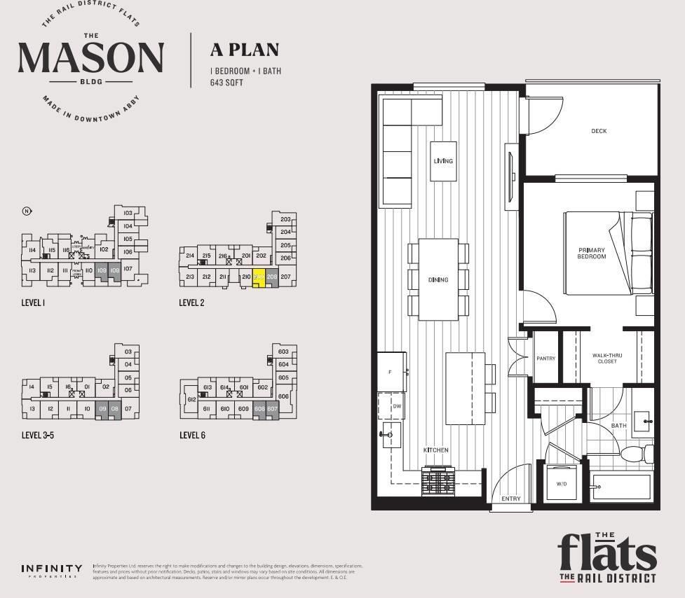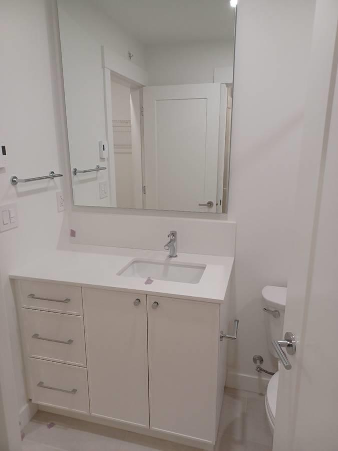 Brand new 1 bedroom, 1 bathroom second-floor condo at The Mason at The Rail District in Abbotsford offering 643 sqft of thoughtfully designed living space. This bright home features 9-foot ceilings, laminate flooring throughout, air conditioning, in-suite laundry & a covered balcony with natural gas BBQ hookup. The modern kitchen is equipped with KitchenAid appliances including a gas range, creating a stylish and functional space for everyday living. Includes 1 secure underground parking stall and 1 storage locker. Residents enjoy exceptional amenities including an outdoor pool and hot tub, fitness centre, sports court, dog park and dog wash station, and a social amenity room with full kitchen. Tenant responsible for utilities. No smoking. Pets considered with restrictions and pet deposit (32504228)