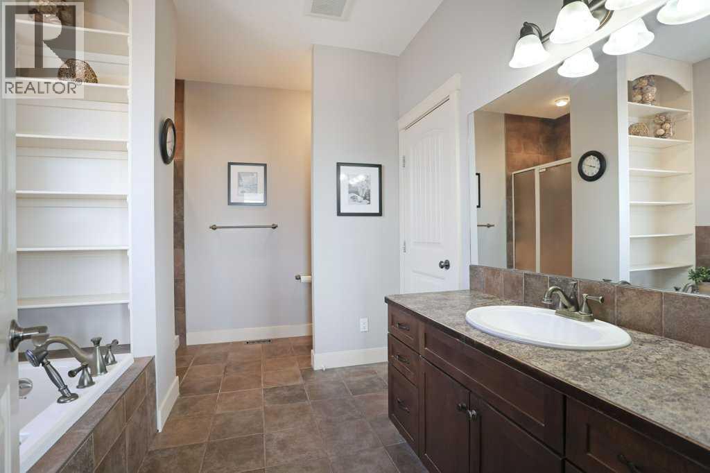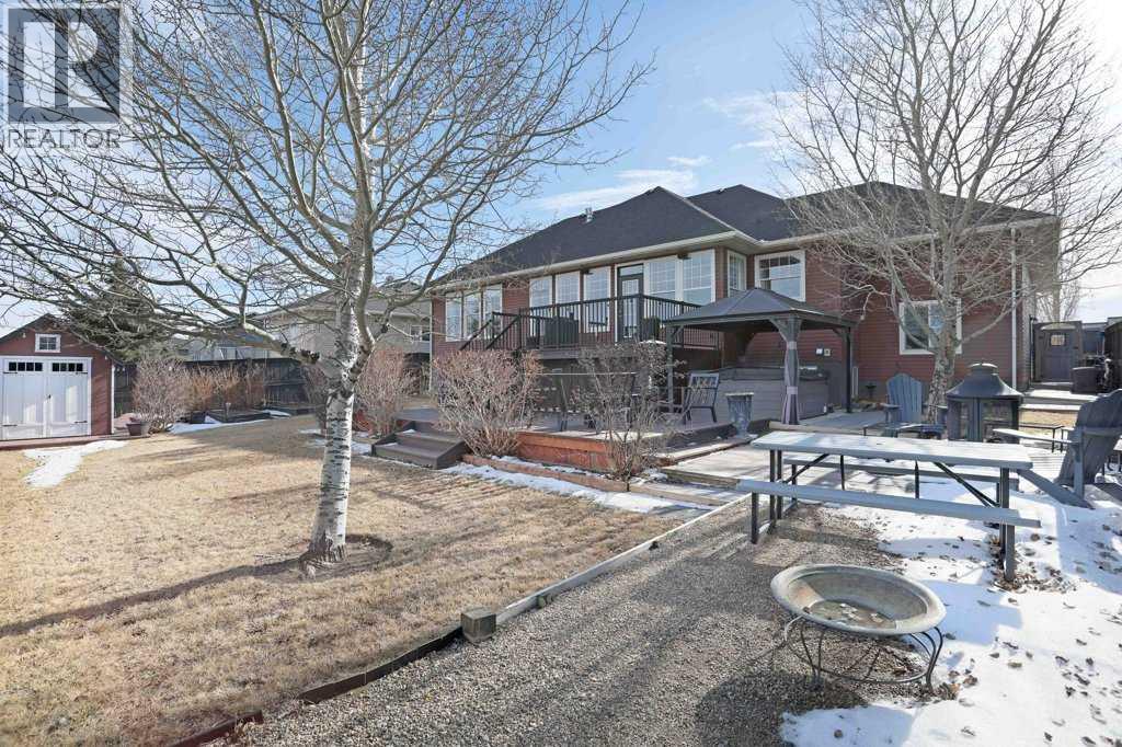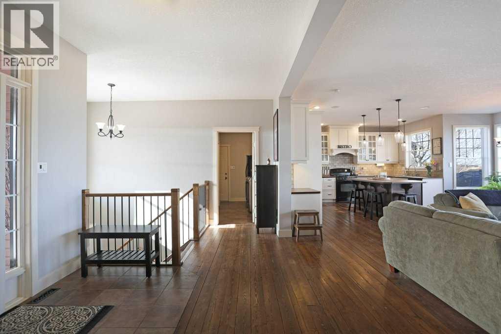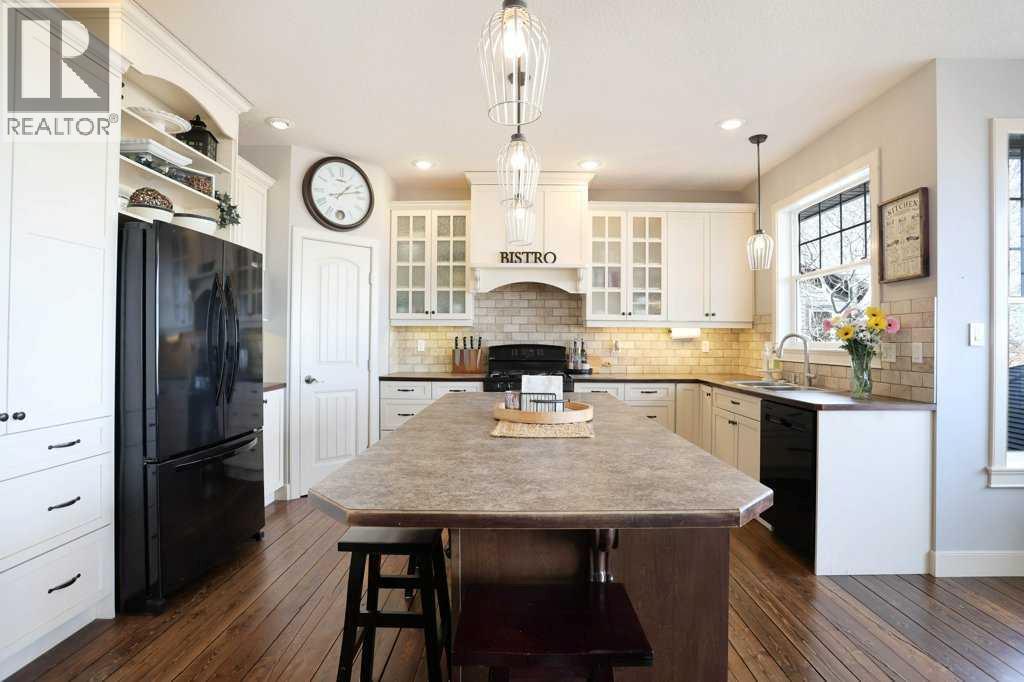 Stunning picture-book home in a quiet and charming location! Custom designed with pleasing and tasteful accents throughout. Presenting #38 Cottonwood Crescent! Upon entering from the Grand front porch, you are welcomed with the inviting open floor plan. The culinarian style kitchen boasts a gas stove, large island, a plethora of timeless designed cabinetry and a hint of Farmhouse style. The vast living room area offers a cozy gas fireplace and a beautiful undisturbed view of the countryside. The primary bedroom is an appreciable size with a walk-in closet and an alluring soaker tub in the ensuite. Main floor laundry with sink, stand-up freezer and just a couple steps takes you into a very well thought out attached garage, that extends to an additional space, currently used as a gym, the uses are endless for this functionalbe space. A convienent wide staircase takes you down to the lower level and you will be pleasantly pleased to see a huge family room, 4 additional bedrooms. One of those bedrooms is set up nicely for a music/sound room. Perhaps for gaming enthusiasts. Yet another ingenious idea, a bathroom that offers a double sink vanity, open shelves for linen, and a private room for the shower! Brilliant! Additional features include Central Vacuum system with a undercounter Vroom accessory, Central Air conditioning and an ever-handy Garburator system. Beautifully landscaped yard with just the right number of trees, garden planters, storage areas, offering an abundance of peacefulness and privacy. The tiered deck is located just off the kitchen/dining area for those sunny Saturday BBQ’s, and yes there is BBQ gas line. This gorgeous home does not disappoint. Be sure to check out the virtual tour offered. (31699414)