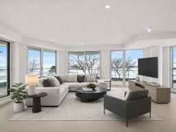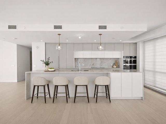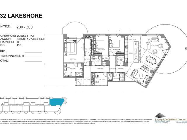Exceptional corner condominium offering 2,082 sq. ft. (gross) of living space, featuring 3 bedrooms, 2 full bathrooms, and 1 powder room. This bright and spacious unit boasts expansive windows and beautiful water front views. Enjoy outdoor living with two private balconies, including an impressive wraparound balcony. Includes 2 garage parking spaces and a storage unit. GST/QST must be added to the asking price (41421316)