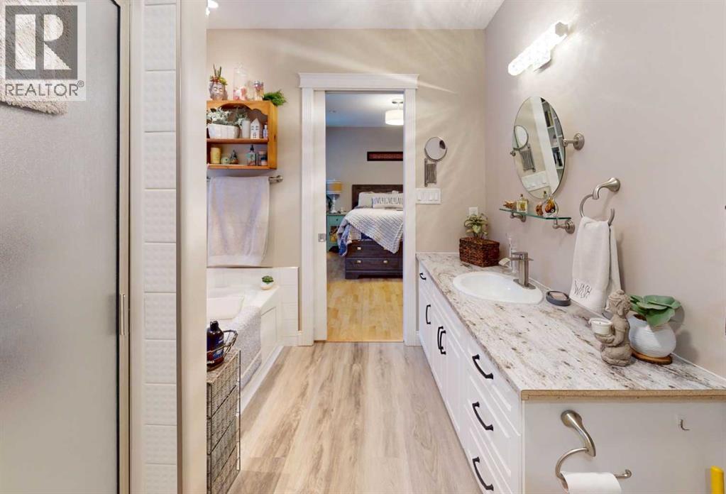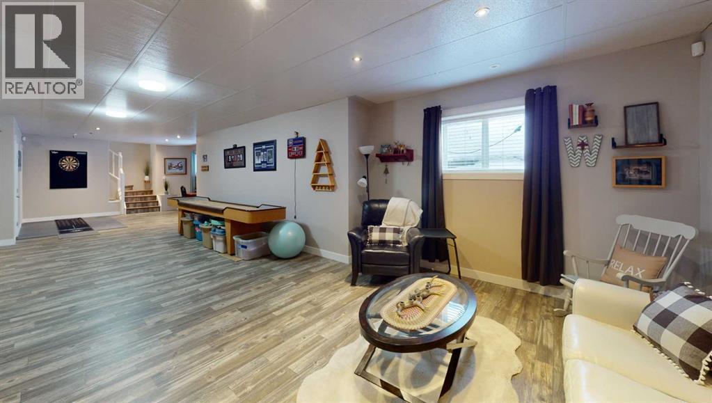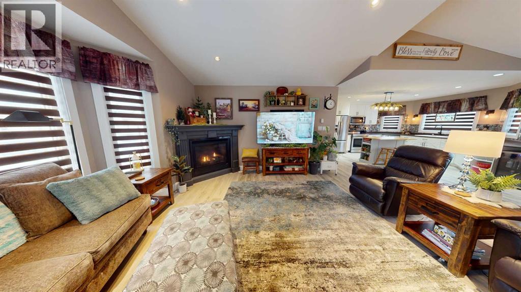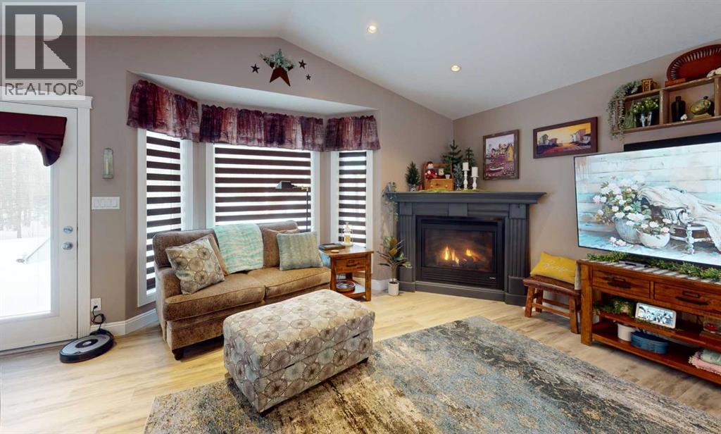 106 Nobula Drive in Blue Heron Estates offers a beautifully built 2006 BOLD Homes residence on a meticulously landscaped .97 acre lot backing onto Crown land with miles of trails in the surrounding area. With 3,400 sq. ft. of finished living space—1,700 sq. ft. on the main floor and 1,700 sq. ft. in the fully developed ICF block basement with in floor heating—this home provides comfort, quality, and an exceptional layout. The main floor features 3 bedrooms and 2.5 bathrooms, including a 4-piece ensuite with a jetted tub, shower and walk in closet. A large open concept kitchen, dining, and living area creates an inviting central space, complete with a gas fireplace, deck access, main floor laundry, a walk in pantry, a kitchen island and a quaint coffee bar. The basement offers an expansive open living area currently set up with shuffleboard, 2 large bedrooms, a full bathroom, and a storage room with shelving and closet space. Outside, the property includes a front deck, a large rear deck with glass railing, a 32' x 32' heated 2-bay garage with in-floor heat and high ceilings, and an additional 15' x 25' enclosed storage space. A garden area, small greenhouse, chicken coop, and wood shed add to the functionality of the property, while the asphalt and concrete driveway and no grass landscaping make maintenance effortless. Services include a 2,200 gallon alarmed cistern, a 2,200 gallon alarmed septic tank, and a separate dug well for garden and yard use. All furniture is negotiable, making this an easy move in opportunity into one of North Buck Lake’s most desirable communities. Blue Heron Estates is a well established subdivision 15 minutes south of Grassland, AB and features a boat launch, playground, pickle-ball and tennis courts, plus ball diamonds. (31699546)