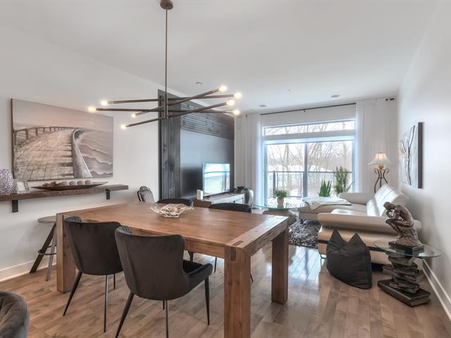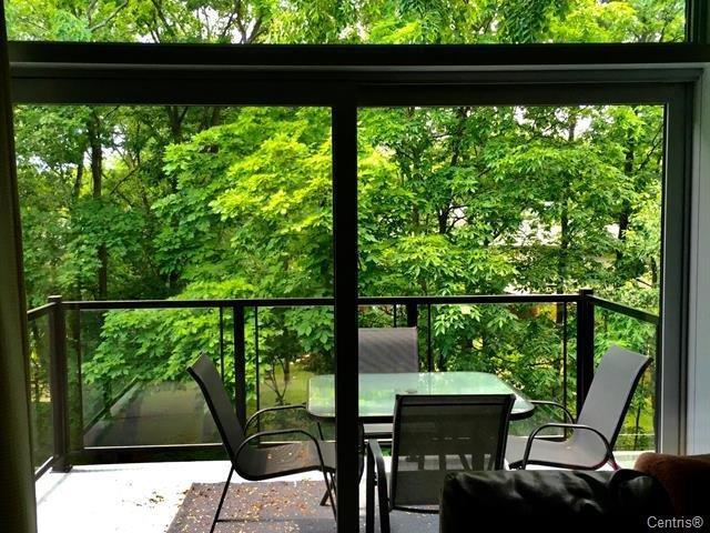 Habitat de la forêt. Magnifique condo ensoleillé, très bien géré (gestion externe) dans un quartier prisé, et une vue imprenable sur le parc Michel-Chartrand. Tranquillité assurée! Près de toutes les commodités et accès routiers. Plafonds 9 pieds, énorme fenestration, comptoir de quartz, armoires ralentissantes, balcon spacieux, 2 chambres, walk-in, Sdb avec 2 éviers, 1 salle d'eau (lavage), garage + rangement et 1 place de stationnement extérieure (rareté). Chauffage central au gaz naturel, climatisation centrale, lumières encastrées, planchers de bois impeccables, peinture rafraîchie en 2023 Date flexible, préfilage pour borne électrique (41490264)