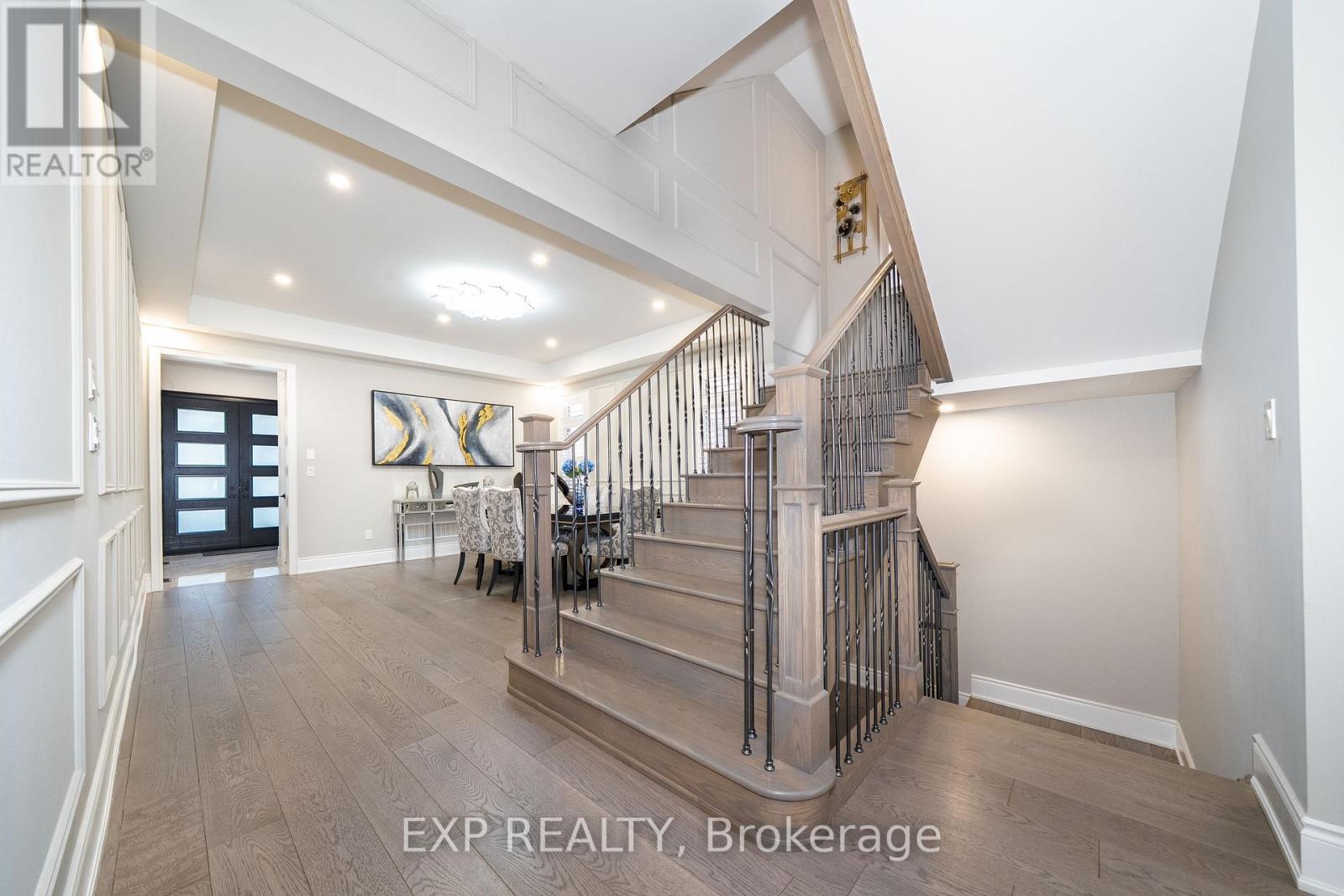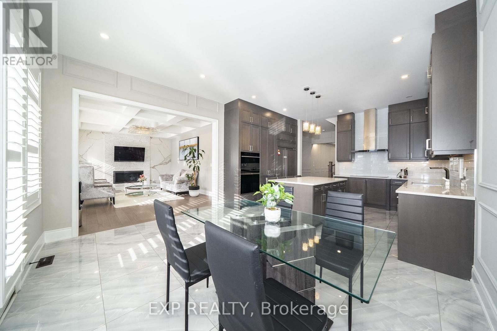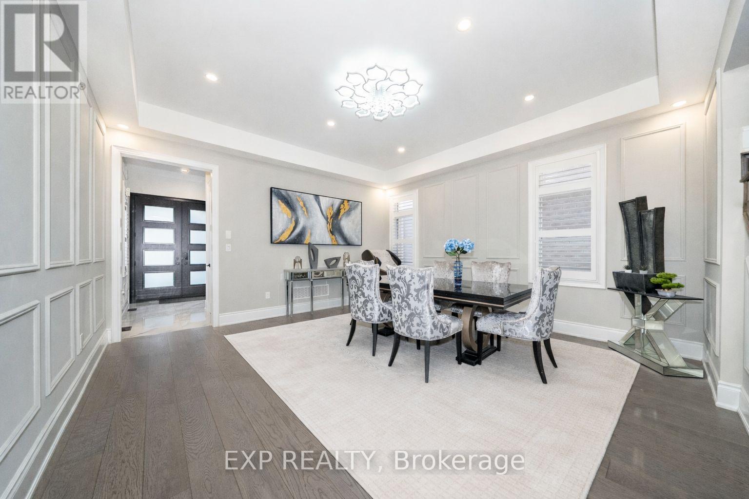 Welcome to 164 Milky Way Drive, an exceptional three-storey detached home offering 4,545 square feet of luxurious above-grade living space (as per MPAC), ideally situated in one of Richmond Hill's most sought-after communities.complete with a 3-car tandem garage. Set on a premium south facing lot with no sidewalk, this remarkable home blends architectural presence with impeccable craftsmanship and tons of custom upgrades. A grand double door entry introduces soaring 10 foot ceilings on the main level and 9 foot ceilings on the upper and lower levels. Rich hardwood flooring flows throughout, complemented by coffered and waffle ceilings, pot lights with dimmers. Designed for both grand entertaining and everyday living, the open concept layout features a formal dining area, a private main floor office, and an inviting family room with a statement waffle ceiling and gas fireplace. The chef inspired kitchen is a showcase of luxury with custom cabinetry, soft closing drawers, and an expansive center island, while a bright breakfast area walks out to the beautifully interlocked backyard. All four bedrooms are generously proportioned, each with its own private ensuite, every room comfortably accommodating a king size bed. The primary retreat offers a spa inspired five piece ensuite and walk in closet. The expansive third floor loft with balcony access provides exceptional flexibility ideal as a guest suite, nanny quarters, executive office, or additional entertainment space. The open basement offers further customization potential. Perfectly positioned minutes to GO Transit, Highways 404 and 407, David Dunlap Observatory Park, fine shopping, dining, and everyday conveniences. (42239552)