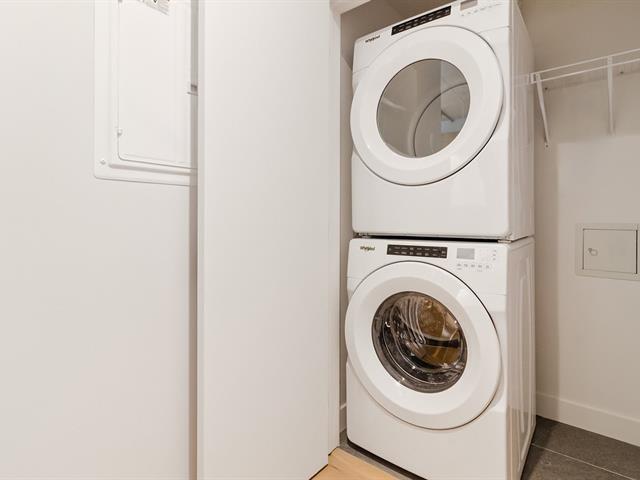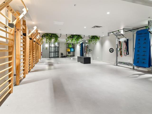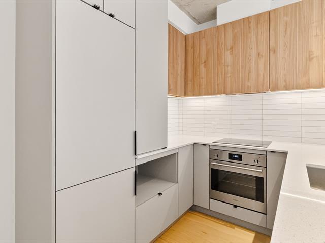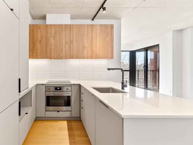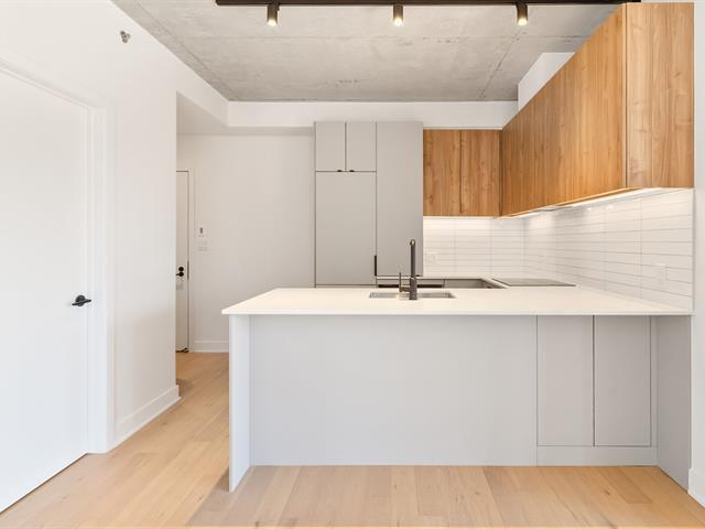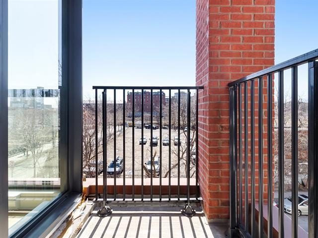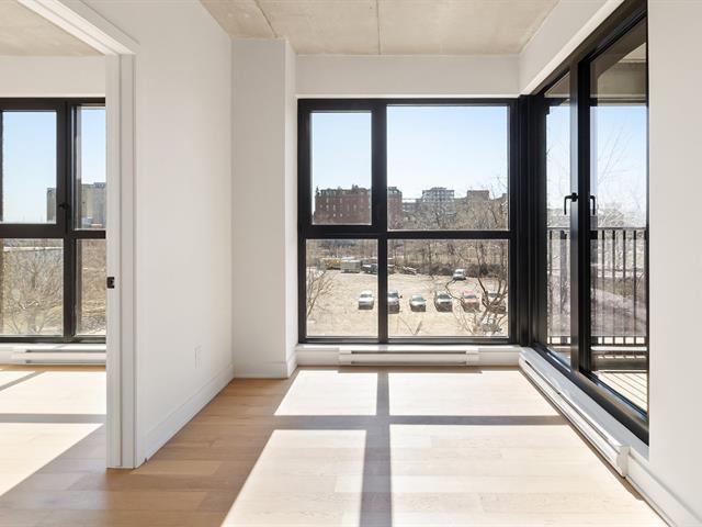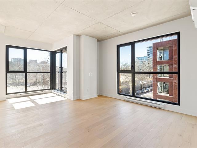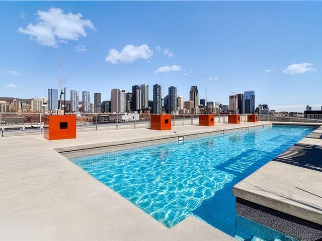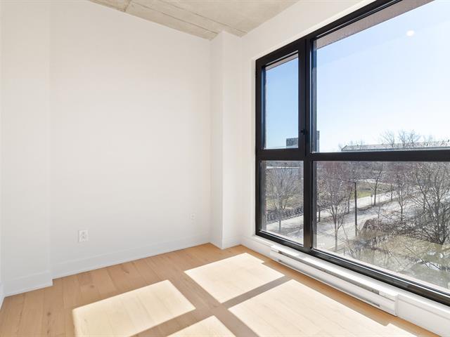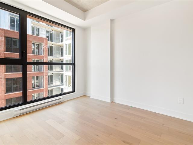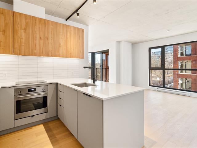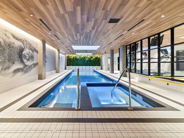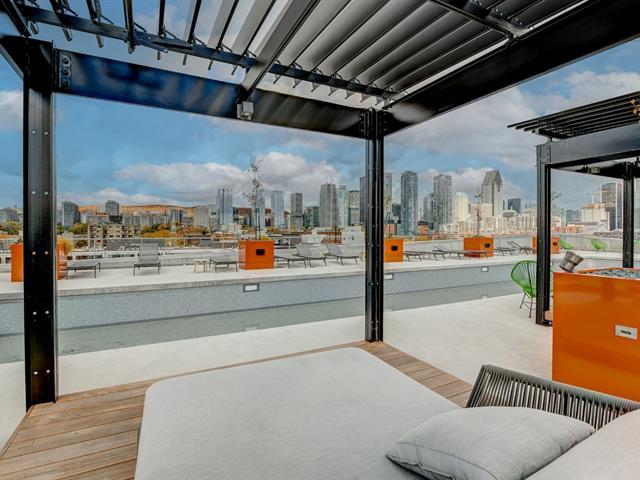 Manignificent condo on the 4 floor of Quartier Général, a prized address in the heart of Griffintown! This corner condo, featuring wall-to-wall fenestration, combines design, brightness and panoramic views of downtown. Open living area with 2 balconies, 2 bedrooms, 1 bathroom, storage and garage. Spectacular roof terrace with pool, BBQ, lounge and urban beach. State-of-the-art sports center with pool, spa and sauna. Close to the Lachine Canal, restaurants, cafés, amenities and transportation. The perfect balance between the excitement and serenity of a city oasis! (48611314)