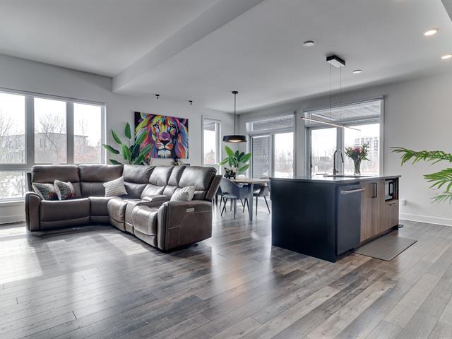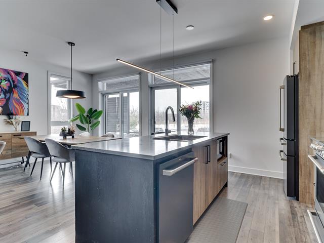 Magnifique condo 2019 situé au coeur de Urbanova 2 chambres à coucher 1 salle de bain + 1 salle d'eau Superbe aire ouverte lumineuse Îlot central en quartz Terrasse unique avec toit en bois et stores d'intimité 1 stationnement intérieur + 2 rangements pratiques Ne manquez pas ce bijou. Une visite libre aura lieu le 8 mars 2026 de 2-4 pm. (56116917)