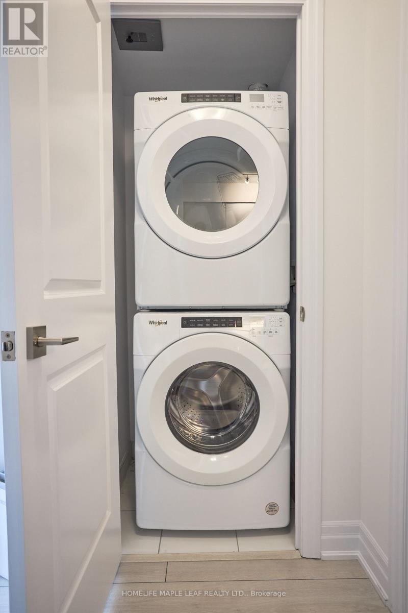 Almost new 2-bedroom, 2-bathroom suite with parking and locker. This beautifully finished unit features 9-ft smooth ceilings, premium laminate flooring, and ceramic tile in bathrooms and laundry. The modern kitchen offers granite countertops, stainless steel undermount sink with pull-out spray faucet, kitchen island, and fully integrated or stainless steel appliances, plus a full-size stackable washer and dryer. Steps to Square One Shopping Centre, Whole Foods Market, Walmart, Restaurants, Cafes, the Future Hurontario LRT, and Cooksville GO Station. Building amenities include an elegant granite lobby with fireplace and vaulted ceilings, 24-hour concierge, galleria, fitness centre, yoga studio, Wi-Fi Lounge, Theatre Room, Games Room, Party Room with BBQ. (42240854)