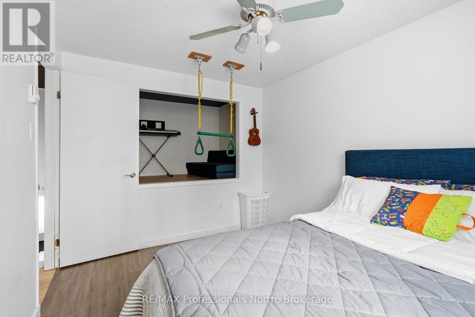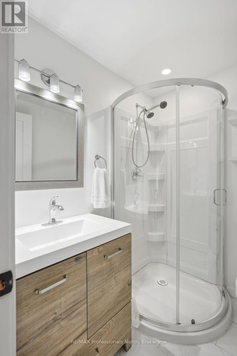 Welcome to this beautifully updated, truly turn key home tucked away on a quiet dead end cul de sac in one of Bracebridge's most desirable family neighbourhoods. Enjoy peace and privacy while being just minutes from everything you need.Walking distance via pathway to Monck Public School, playground, and soccer fields, and close to grocery stores, shops, and daily amenities. Only 5 minutes to Highway 11 and 10 minutes to a public boat launch on Lake Muskoka. Plenty of space to store your boat, trailer, or large RV right at home.The fully fenced backyard is beautifully landscaped with mature trees at the rear for exceptional privacy. Enjoy a built in in ground trampoline, flagstone fire pit, stone retaining wall, and gardens, plus a large concrete pad running the full length of the home and extending 13 feet out. The driveway has been extended along the side of the house to the back of the property, ideal for recreational storage. Double attached garage for added convenience. Inside, this home has been extensively renovated and expanded. A major addition created a spacious primary bedroom with ensuite, upstairs laundry, and improved overall functionality. The main living space was completely rebuilt, featuring a gas fireplace with custom shelving. The front deck was rebuilt and extended with stone steps, and the exterior updated with new shingles and paint.Additional upgrades include new front and rear doors, sliding patio door, bay window and living room window, tiled lower level flooring, all new appliances in 2021, heat pump added for additional heat and AC, new rental water heater, replaced baseboard heating, and updated garage electrical. A rare opportunity to own a move in ready home in a quiet Bracebridge neighbourhood. Check out the additional photos link for summer photos, video, upgrade sheet, and utility costs. (42241013)