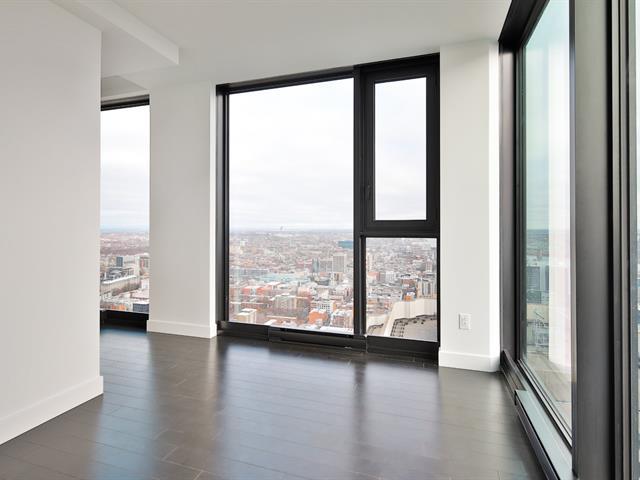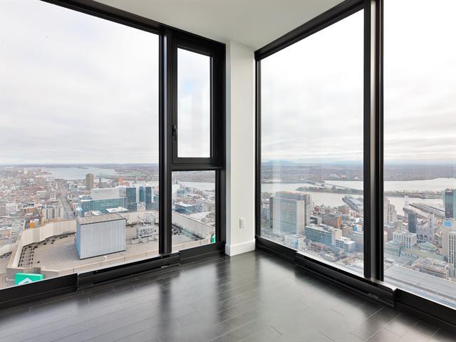 Discover this stunning condo for rent in the heart of downtown, just steps away from all services, shops, and public transportation. Located on the 55th floor, this corner unit stands out for its exceptional natural light, thanks to its expansive floor-to-ceiling windows, offering spectacular panoramic views of the city and the St. Lawrence River. Set in a modern and prestigious building, you will enjoy high-end common areas designed for a refined urban lifestyle. An ideal opportunity for those seeking comfort, elegance, and a prime location in the heart of the action. A rare opportunity not to be missed. (39856090)