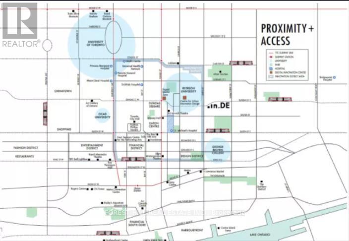 Open-concept one-bedroom suite at the IN.DE Condos by Menkes, offering a functional living and dining layout within 510 sq. ft. Features include a full bathroom, ensuite laundry, walk-in closet, engineered hardwood floors, stone countertops, and a modern designer kitchen with stainless steel/luxury brand appliances included. Enjoy a private balcony with a stunning southwest-facing, unobstructed western city view. Exceptional downtown location-steps to streetcar access, Dundas Square, Eaton Centre, Ryerson, U of T, OCAD, George Brown College, and surrounded by cafés, shops, and restaurants, including Tim Hortons and Starbucks. (42241683)